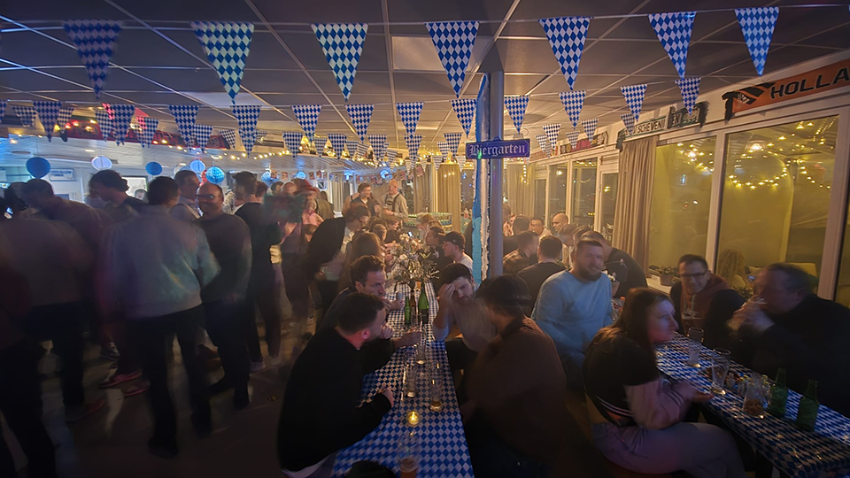 De kantine stroomde snel vol - de opkomst was gigantisch. Mensen in lederhosen en dirndls maakten meteen duidelijk dat dit een avond vol gezelligheid zou worden. En toen begon DJ Alfons. Met een ongeëvenaarde flair mixte hij Duitse topmuziek met 90’s knallers, een vleugje hardcore en zelfs wat Nederlandstalige meezingers. Het resultaat? Een dansvloer die van begin tot einde ramvol stond. Zelfs de mensen die normaal liever toekijken, werden door zijn muziek de vloer op gesleurd.